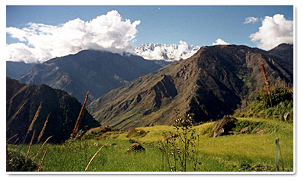 border. The langtang valley is sourrounded by high peaks of great